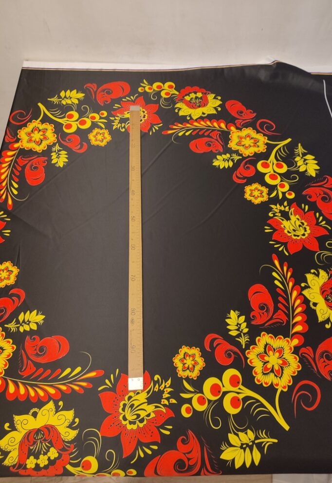 Ткань Хохлома черная по кайме для юбки солнце Атлас, Креп-сатин, Сатен, Габардин и др. основы ширина 150 см