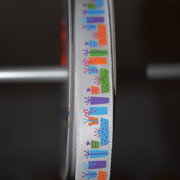 Атласная лента 12 мм с рисунком Подарки