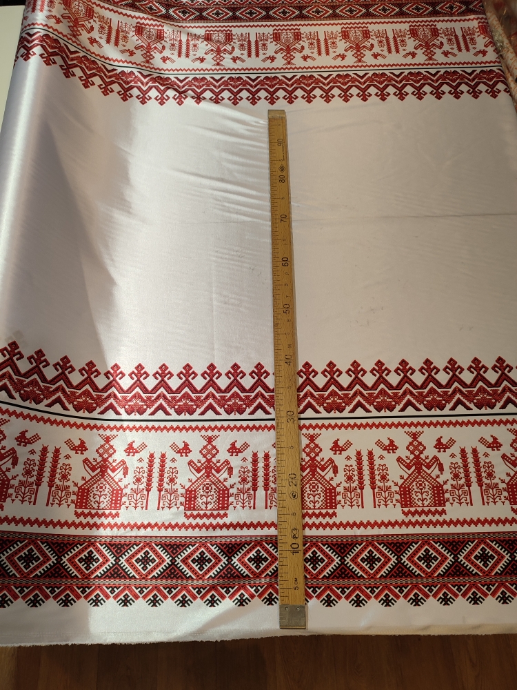 Высота всего узора 40см. Узор идет по каймам ткани в длину рулона.