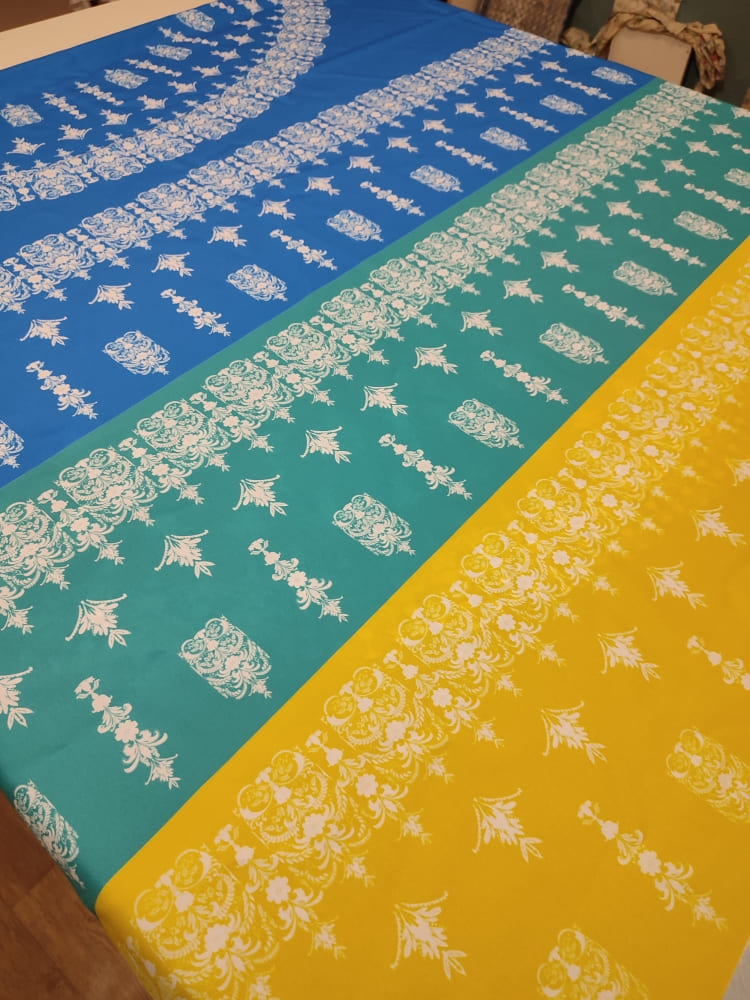 Шифон (700 руб/м) – Ширина 150см. Плотность 130-140гр/кв.м, 100% полиэстр. Полупрозрачный, матовый. За счет прозрачности ткани, рисунок также полупрозрачный. Струится, мягкий